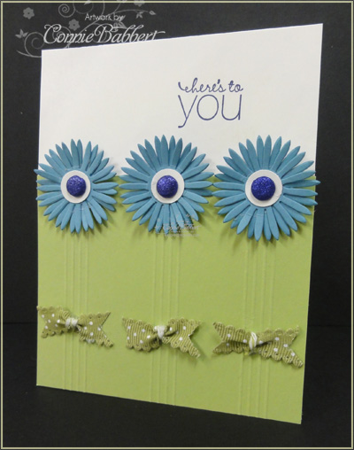 So much fun, Connie. Love the daisies with the sparkly centres, the lines coming down from them, and the bows at the bottom!