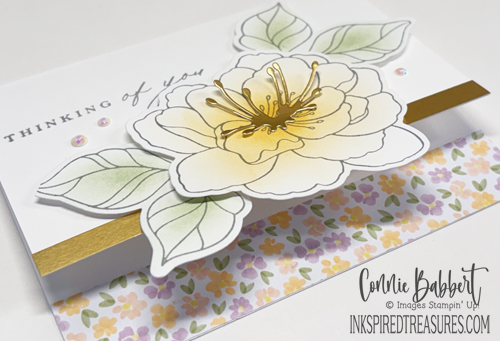 - The flower center was cut with the Die from Gold Metallic Paper and adhered.