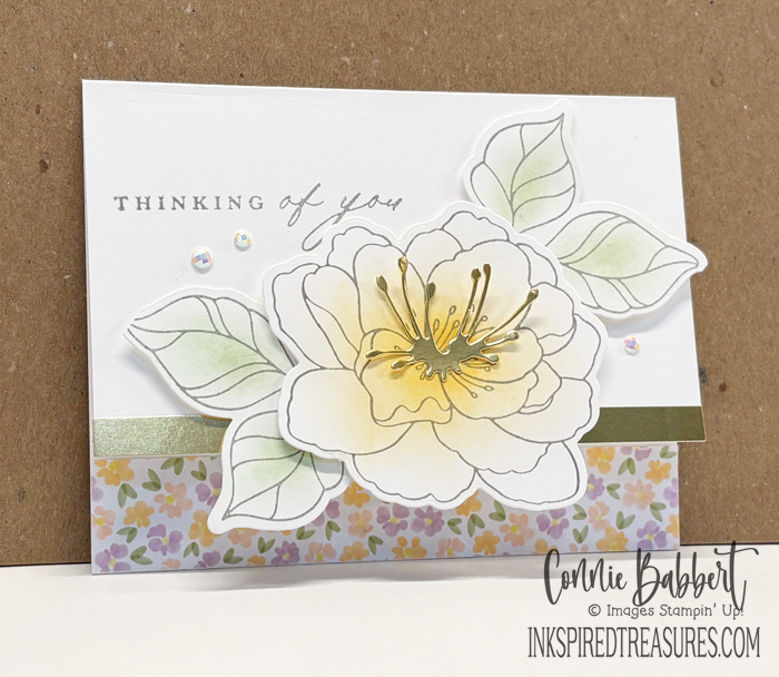 - The flower center was cut with the Die from Gold Metallic Paper and adhered.