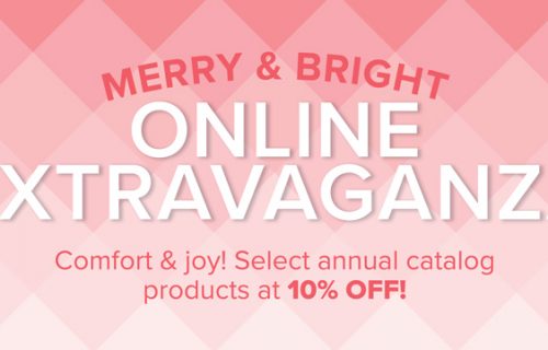 MERRY & BRIGHT ONLINE EXTRAVAGANZA SALE TUESDAY, NOVEMBER 24th ONLY! For ONE DAY ONLY on Tuesday, November 24th, Stampin’ Up! is offering 10% off almost the ENTIRE ANNUAL CATALOG! This INCLUDES bundles,… [Read More]