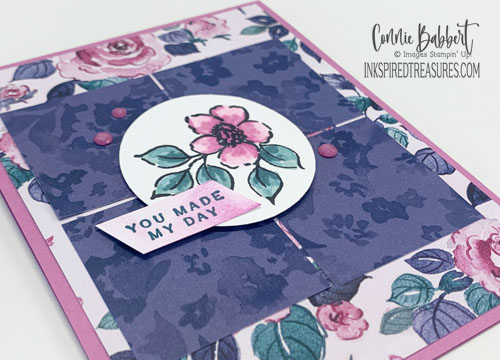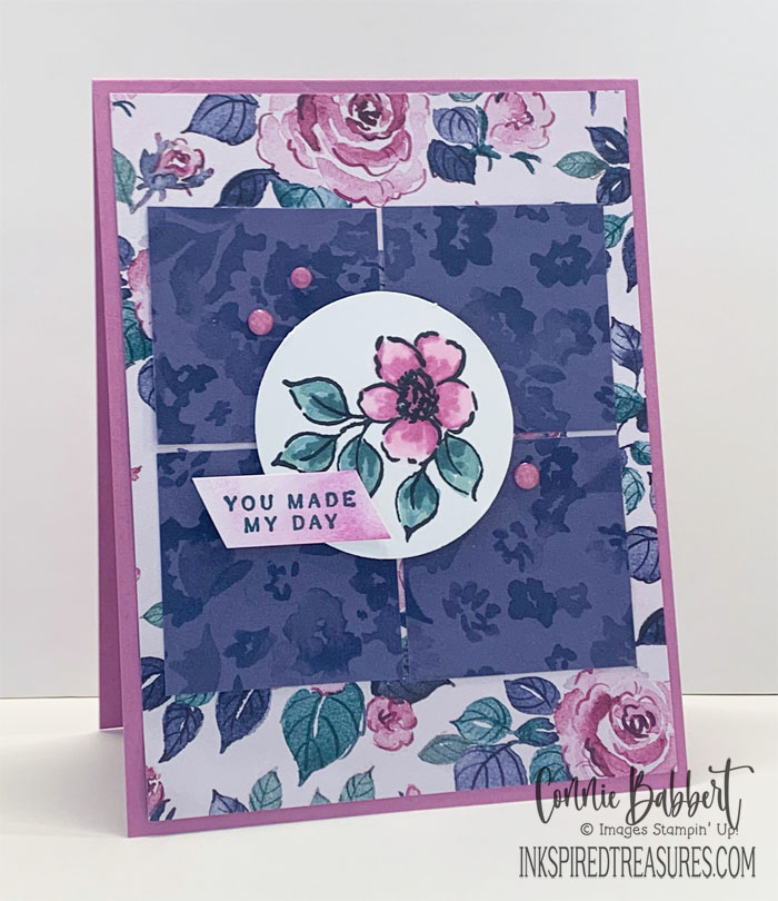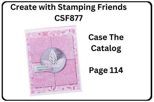 It’s Thursday and time for our Create with Stamping Friends challenge! For each Thursday in July, we pick a different sample from Stampin’ Up’s! Annual Catalog to use as our inspiration. We are not copying the card but using it to inspire our creation…maybe we use the same set or the colors or the layout or some combination of all the above…it is fun seeing where the inspiration piece will take each of the designers! Here’s this week’s inspiration: