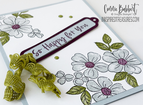 - A 1-1/4 x 5-1/2 strip of the floral Delicate Dreams DSP was added on the left side.