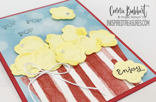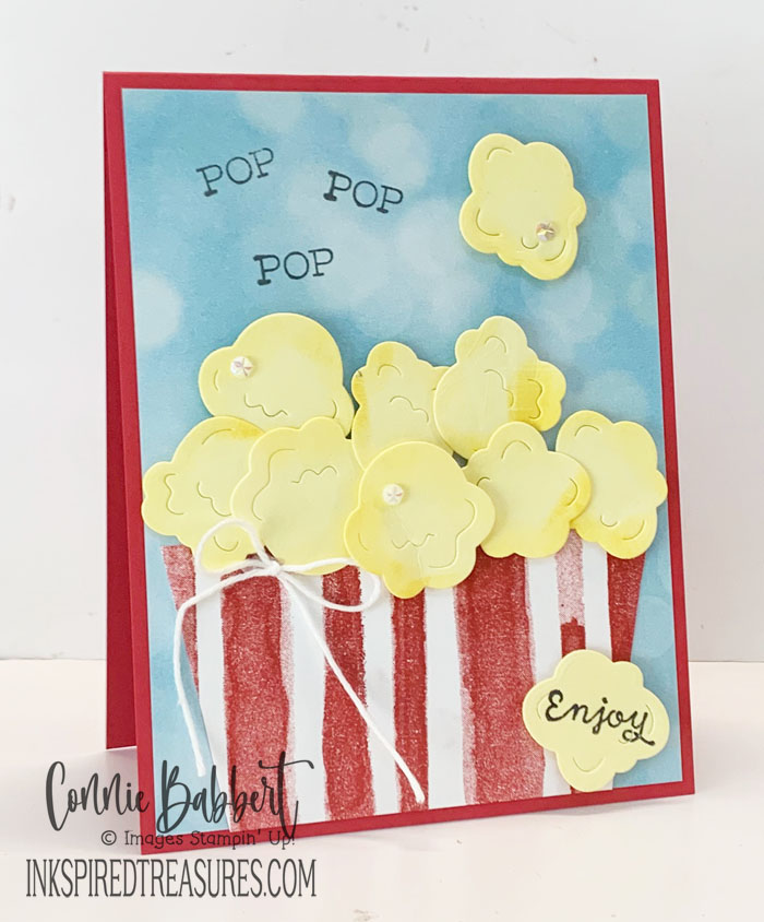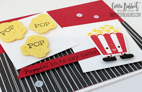I tried my hand at making a container of popcorn on My card! So fun to die-cut all those popcorn pieces!