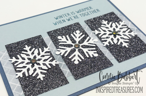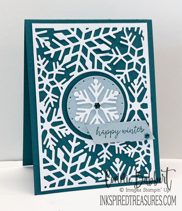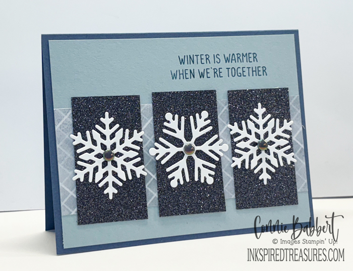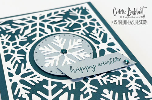 I’m not quite ready to embrace Valentine’s yet, so found a beautiful greeting about love in the Jolly Holly stamp set that I’ve used quite a bit this season! I’ve also gone with a soft color palette.