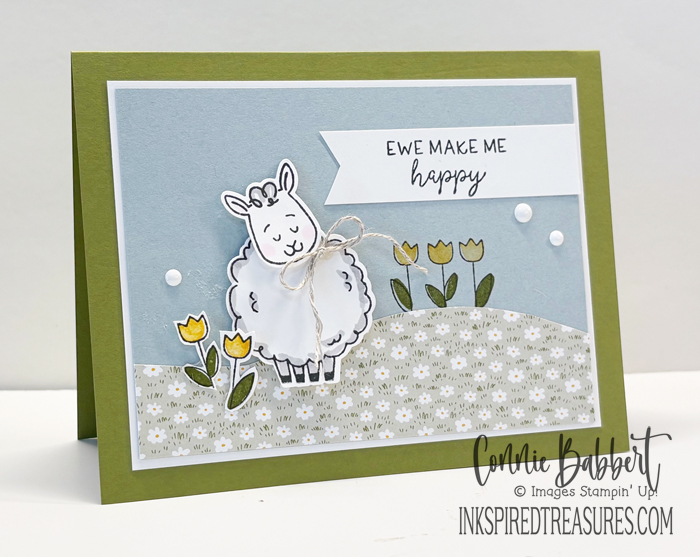 Obviously, I had to use the new Woolly Friends stamp set and punch on today’s card! It will be available to order January 6th! So cute!